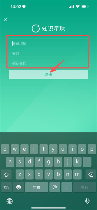 3、在注册页面,填好邮箱地址、密码和确认密码,点击注册。