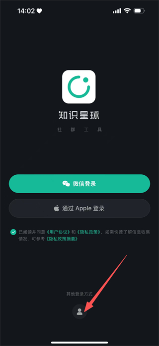 1、打开知识星球登录页面,点击底部图标,切换到邮箱登录界面。