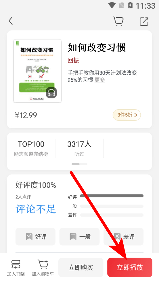 3、在书籍详情页面,点击立即播放按钮,进入听书界面。