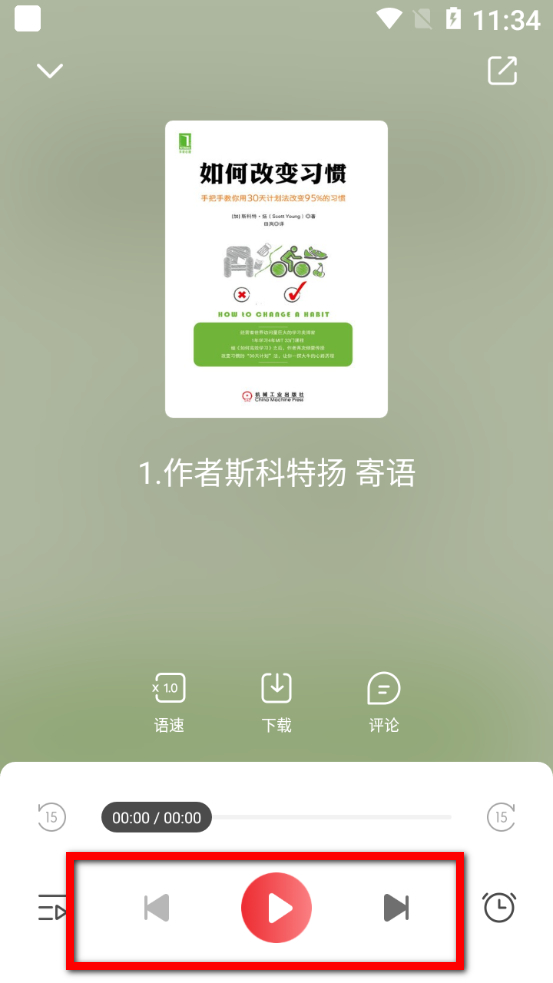 4、在听书界面,可通过下方播放按钮控制听书,还可调整语速等设置。