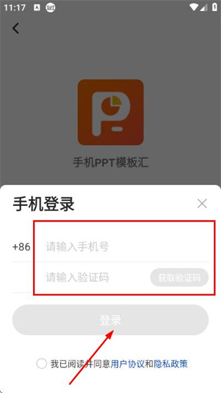 4、在手机登录页面填写手机号和验证码,勾选协议后,点击登录完成账号登录操作。