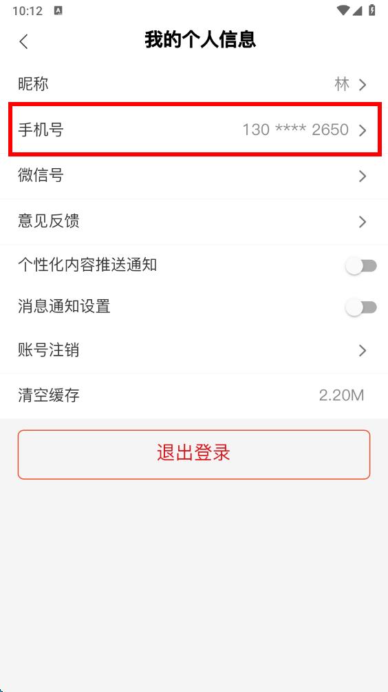 3、在个人信息设置界面中,点击手机号选项进入手机号更换流程。