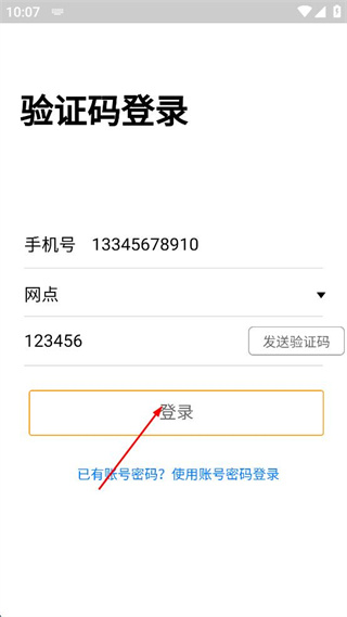3、填好手机号后,补充网点信息并输入验证码,点击“登录”按钮完成操作。