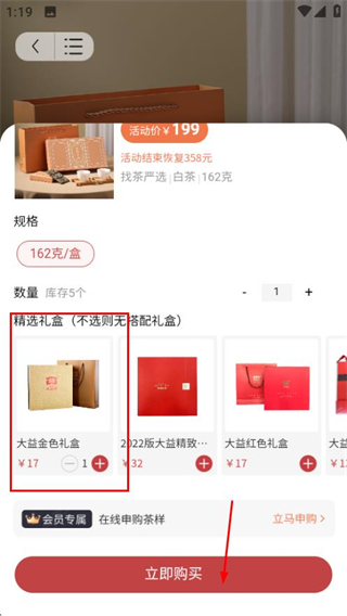 5、在规格选择页面,选定规格和数量后点击立即购买,完成购买流程。