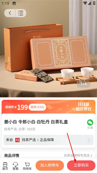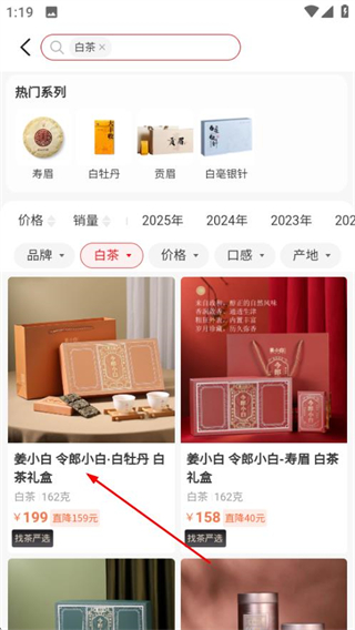 3、在白茶列表页,点击目标商品,进入商品详情页。