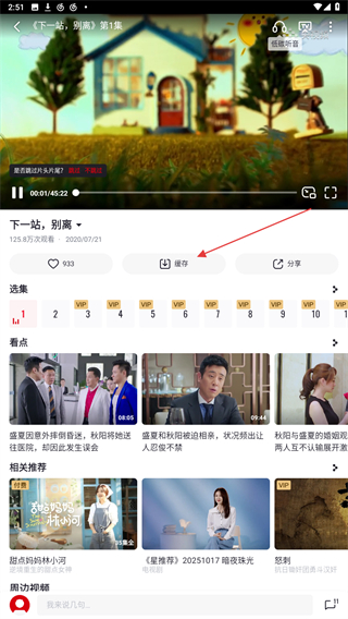 3、进入播放的页面内,用户需点击画面下缓存的功能按钮。