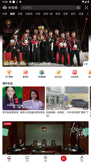 1、打开央视频的APP,进入时点击右上的功能图标。