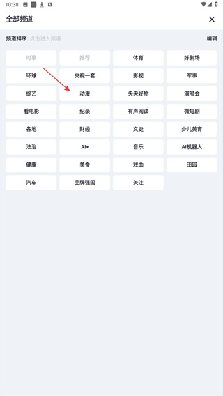 2、进入全部频道的页面内,选择并点击动漫。