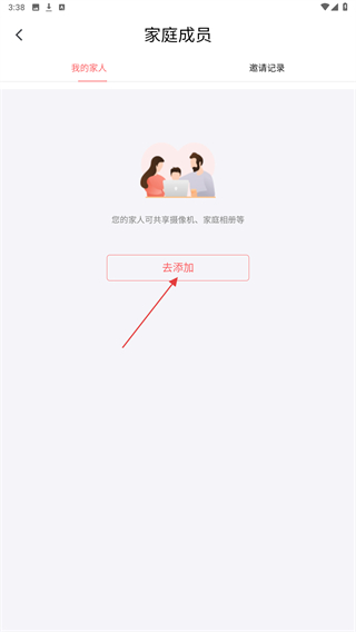 3、在家庭成员页面,点击去添加按钮,进入邀请新家人的操作页面。