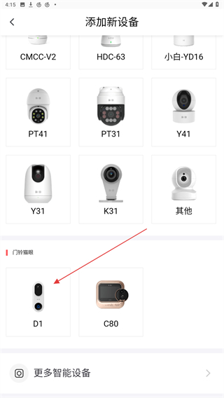 2、进入添加设备的页面内,向下拉动点击D1的设备。