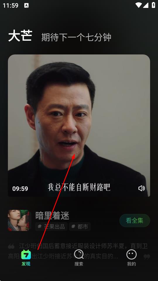 1、打开大芒追剧APP,在发现页面选择想要追的剧集,点击进入播放页面。