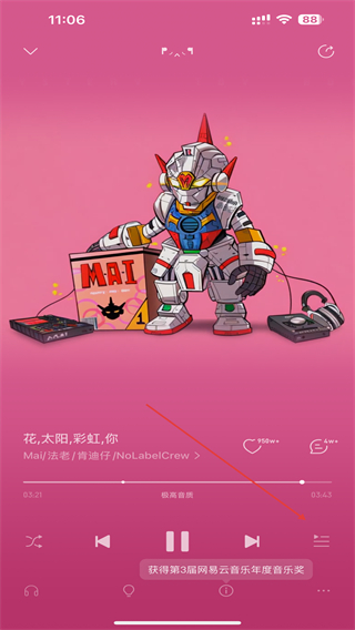 2、进入歌曲播放的页面内,点击右侧的功能按钮。