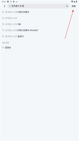 2、在输入框内输入歌词后,点击右侧搜索的按钮。