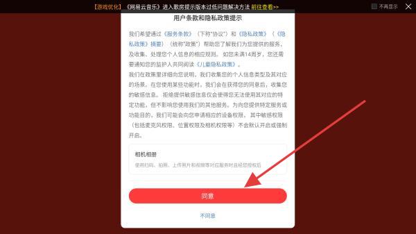 1、打开网易云音乐APP,首次使用需:同意服务条款、隐私政策,点击后即刻开启下一步。