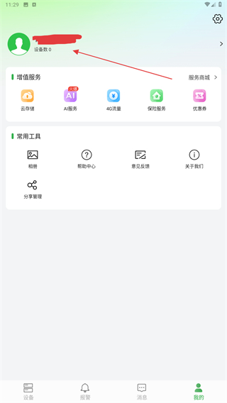 1、打开手机远程监控的APP,进入首页点击右下角我的图标。