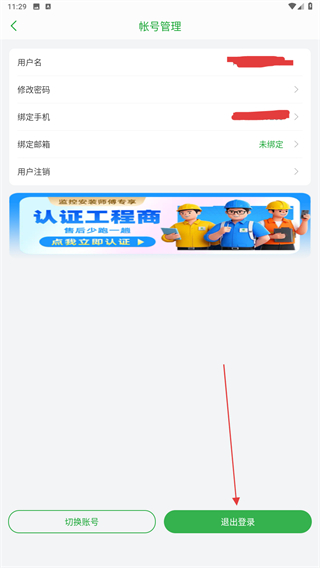 3、进入账号管理的界面内,点击下方退出登录的功能按钮。