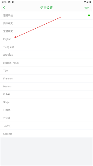 4、在语言设置的页面内,选择并点击要切换的语言即可。