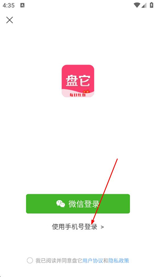 1、在阅读用户协议和隐私政策后,点击使用手机号登录选项,进入登录界面。