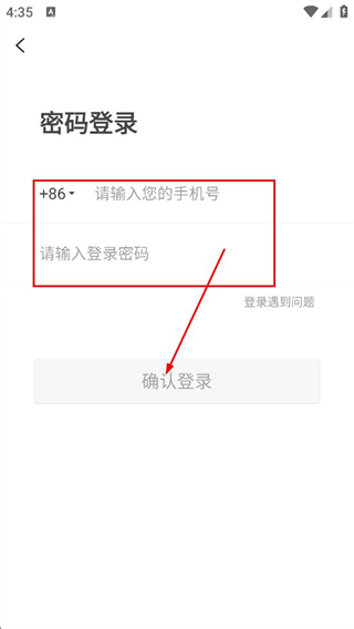 3、在密码登录页,填写手机号与登录密码,点击确认登录,完成账号登录。