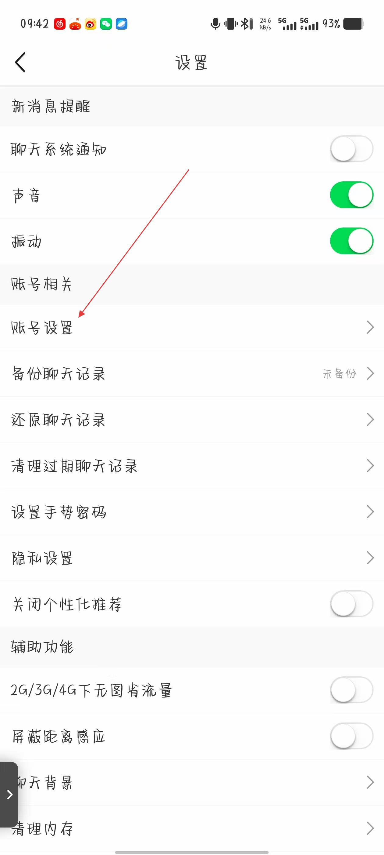2、在设置界面中,点击账号设置选项,进入账号设置页面。