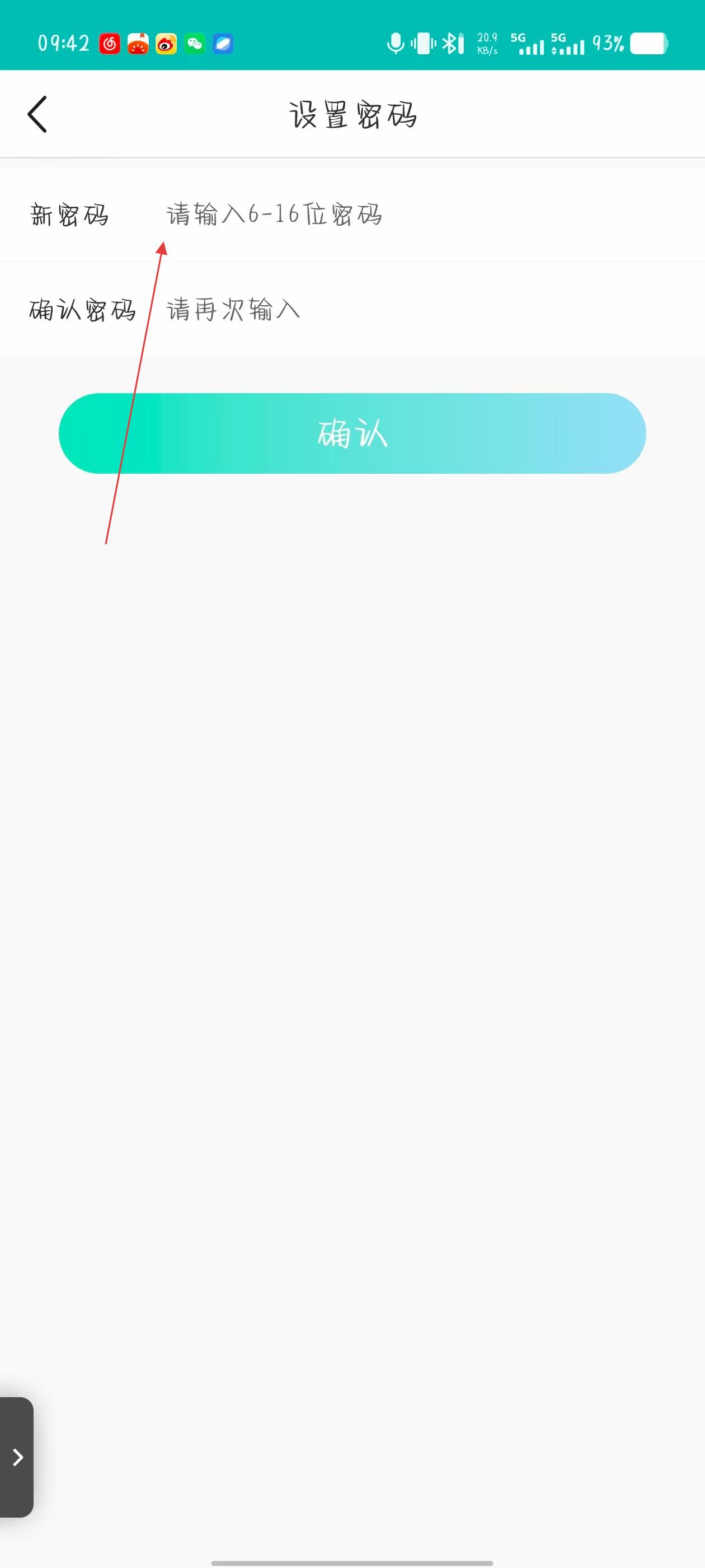 4、在设置密码界面,于新密码栏输入6-16位密码,再在确认密码栏重复输入该密码,最后点击确认按钮。
