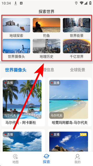 3、在探索世界页面,选择目标分类,点击进入对应分类的内容列表。