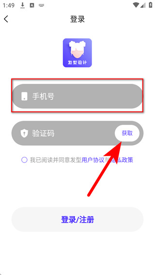3、进入登录页面后,填写要注册的手机号,点击验证码输入框右侧的获取。