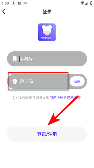 4、勾选我已阅读并同意选项,将收到的短信验证码填入框中,点击登录注册。