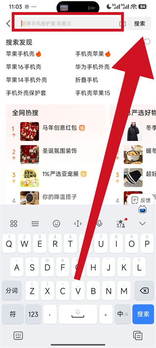 2、在搜索界面,输入要购买的商品关键词,点击右侧搜索。