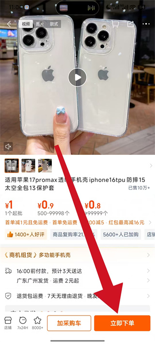 4、在商品详情页确认信息后,点击立即下单,按提示完成支付,即可完成购买。