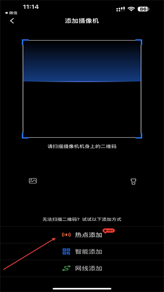 2、在添加摄像机的页面内,点击下方热点添加的按钮。