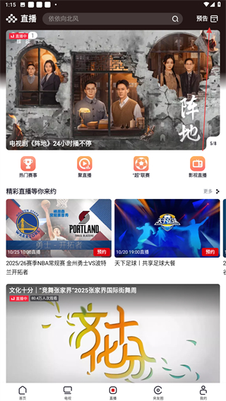 1、CBA、五大联赛火热进行中!锁定央视频,让我们共同期待。