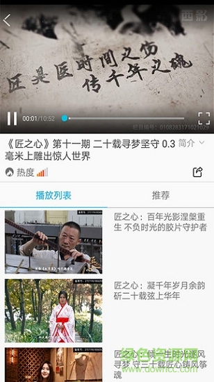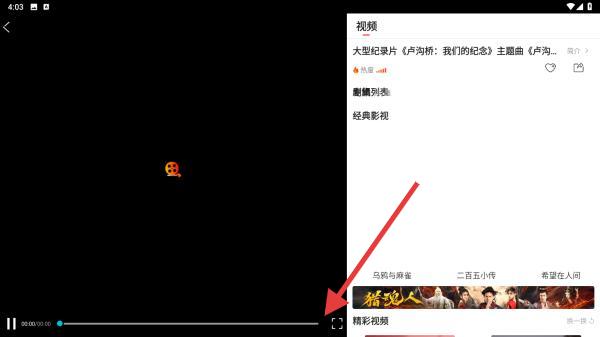 3、打开相关的视频进行观看,呈现的是经典的影视大型纪录片,点击放大的按钮进行全屏播放。