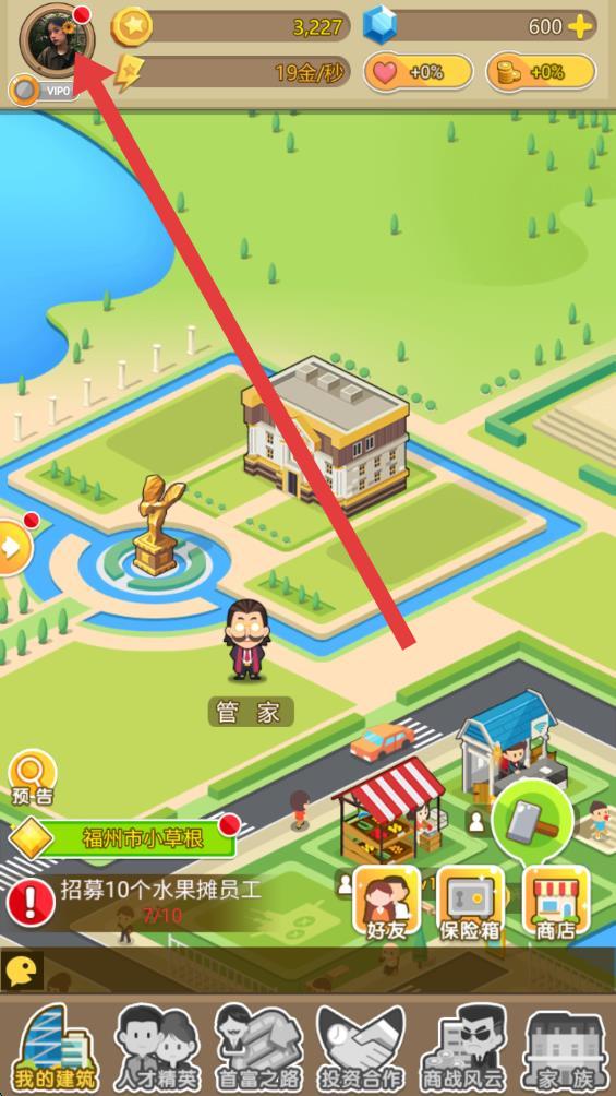 2、进入游戏主界面后,点击左上角的头像图标,进入个人信息界面。
