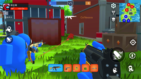 2、进入战场后,操控角色移动,点击开火按钮攻击敌方小人,积累击杀数。