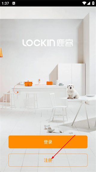 1、在鹿客APP的启动页面,点击下方的注册按钮,进入注册界面。