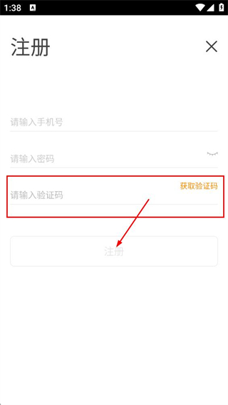 3、在注册页面,继续填写请输入验证码,完成后点击注册按钮,完成注册操作。