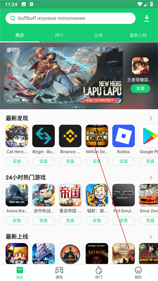 1、下载安装好APKPure软件后,点击进入软件,点击下方的商店,就能看见页面有丰富的游戏软件应用,有需要的可以直接点击【安装】即可,也可点击上方的搜索框,输入目标名,找到软件点击下载即可;