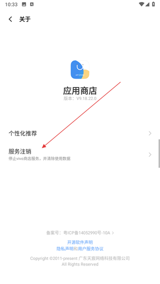 3、在关于页面找到服务注销选项,点击该选项弹出相关界面弹窗。