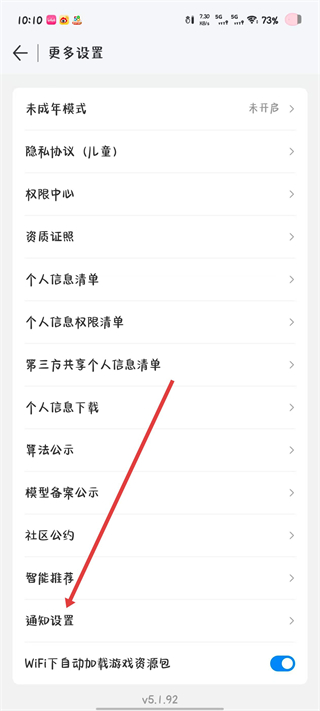3、在更多设置页面找到通知设置选项,点击该选项进入通知相关的设置界面。