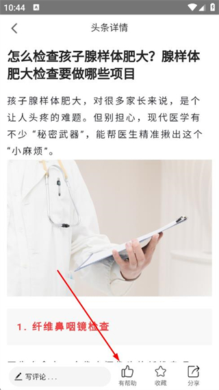 4、在头条详情页面点击底部有帮助,即可完成点赞操作。