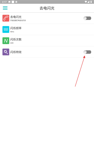 2、进入到该页面内,开启闪光特效右侧的开关按钮。