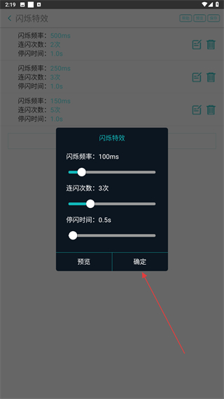 4、设置好闪烁频率、连闪次数、停闪时间后,再点击确定的按钮即可。