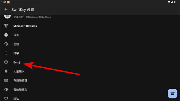 1、打开SwiftKey设置界面,点击其中的Emoji选项。