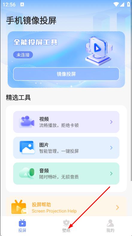 1、在手机镜像投屏主页面,点击壁纸,进入壁纸页面。