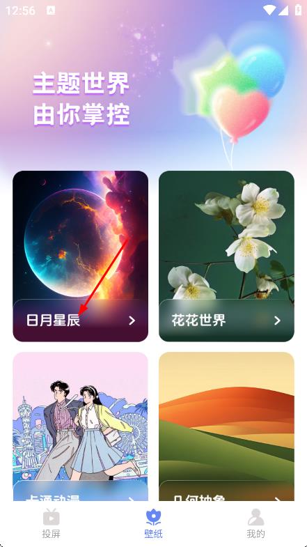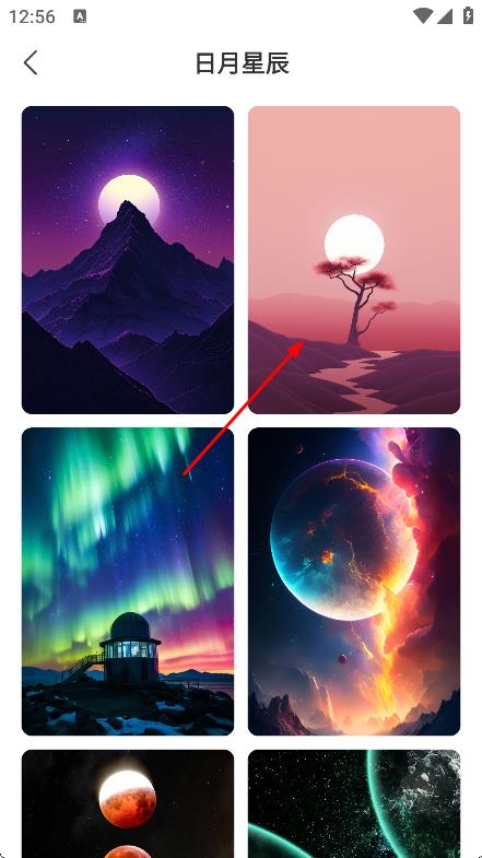 2、在壁纸页面,点击日月星辰,进入壁纸分类页面。
