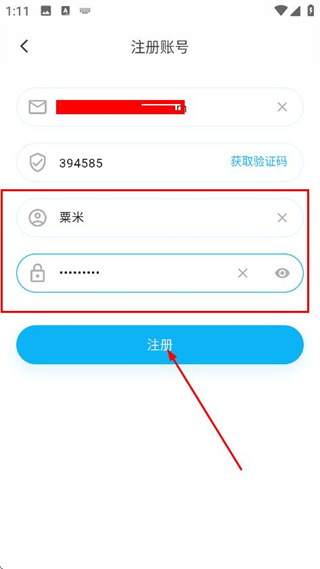 4、在注册账号页面,输入昵称和密码后,点击注册,完成注册操作。