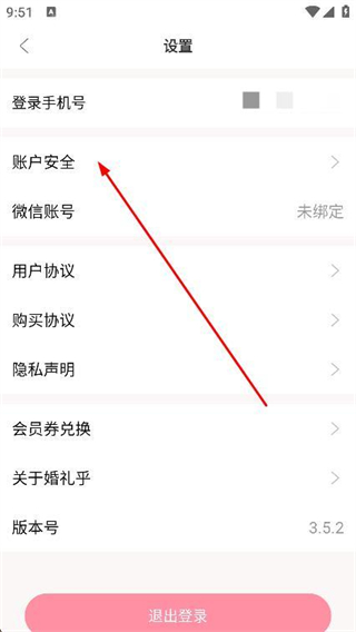 3、进入设置页面后,点击账户安全选项。