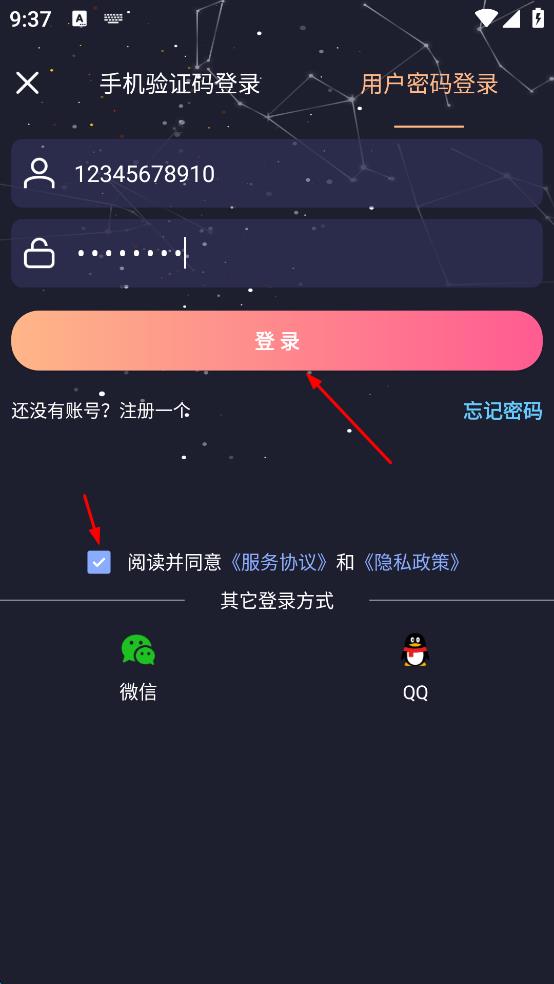 4、勾选阅读并同意服务协议和隐私政策,然后点击“登录”按钮,完成登录操作。