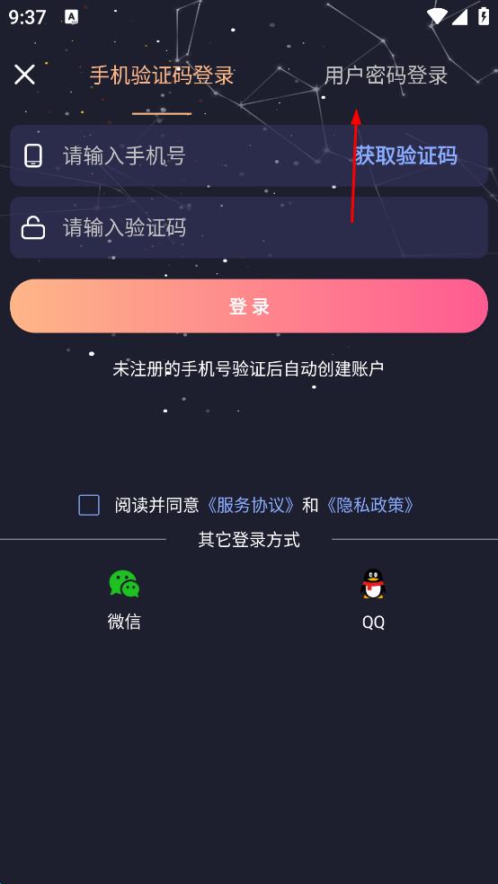 2、在登录页面,点击上方“用户密码登录”选项,切换到用户密码登录界面。